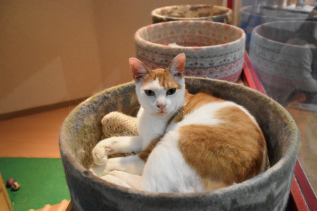 ネコがのんびり暮らす様子が見られます。※お昼に展示を1時間程度休止。