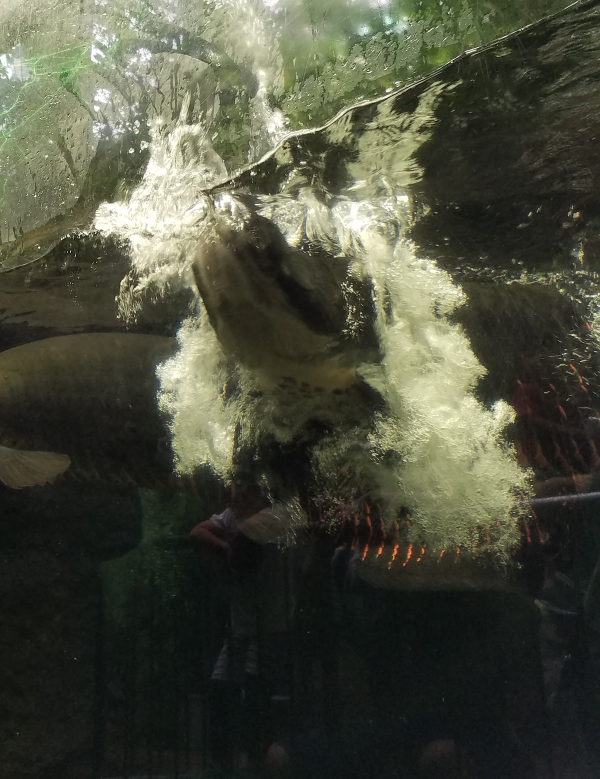ピラルクは素早く泳ぐことはできません。食べ物の周りの水や空気ごと飲み込む事で自分よりもすばしっこい魚も捕食することができます。