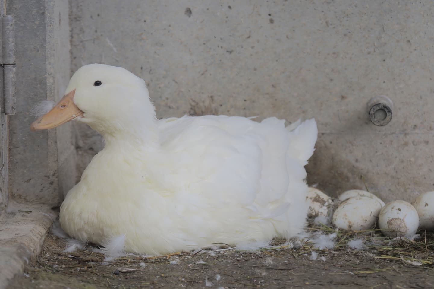 アヒルは年間で150個以上卵を産むそうです。しかし、沢山卵を産むと母体に負担がかかり弱ってしまいます。そこで、生物園では擬卵と呼ばれる偽物の卵を母アヒルに抱かせることで産卵数を調整しています。なお抱卵中は大事な卵を守るためにちょっぴり怒りっぽくなります。観察する時には、驚かさないようにしましょう。