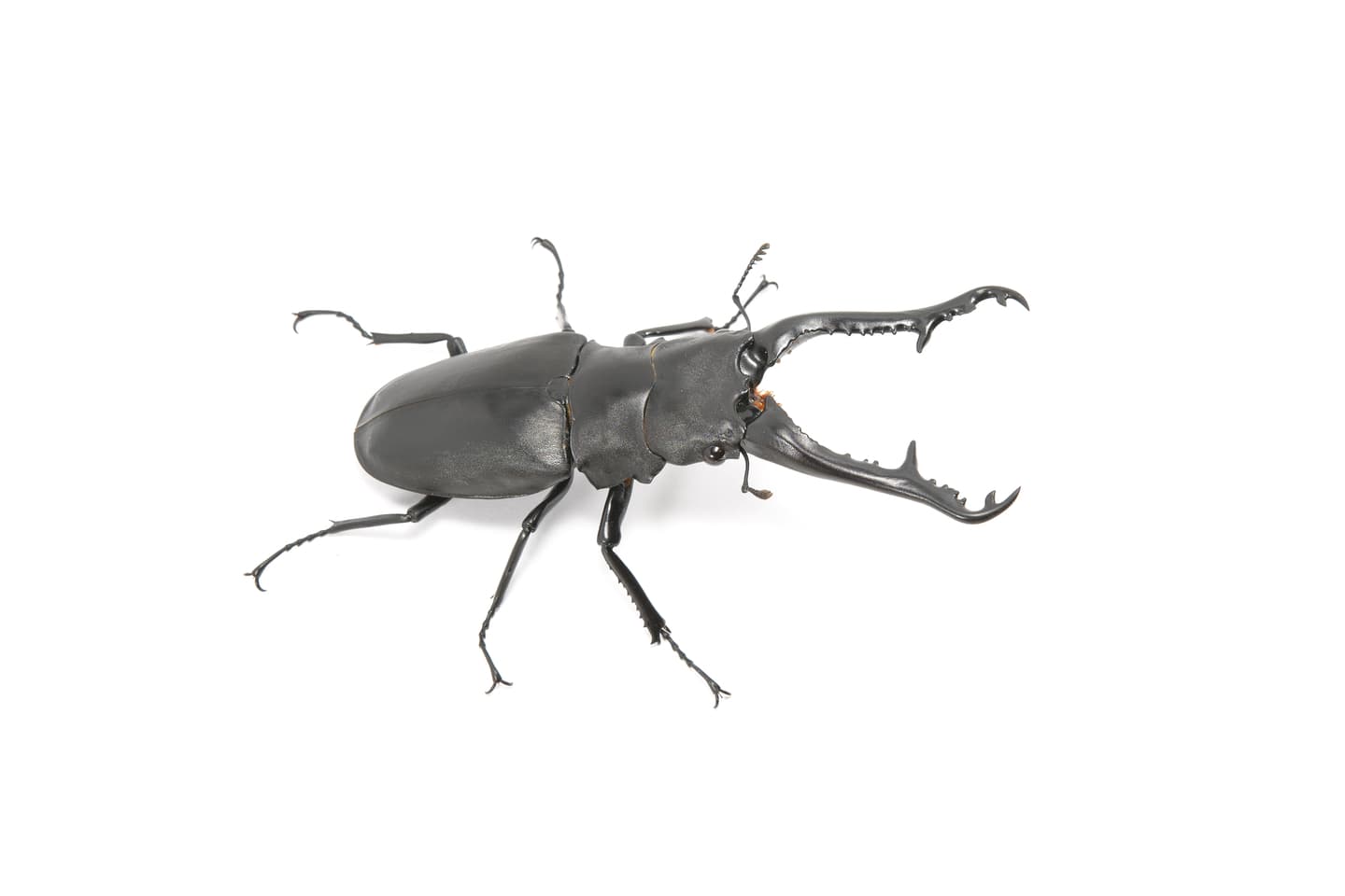 東南アジアに広く分布するノコギリクワガタの仲間で、世界最大のクワガタムシのひとつです。名前の「ギラファ」とはキリンのことで、細長く伸びる大あごをキリンの首に見立てて名付けられたと言われています。