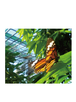 本種は成虫になってからも毒を保有しており、アピールするために派手な模様しています。そのため本種を食べた天敵の鳥は、派手な見た目と味をしっかり覚えます。天敵に襲われる心配が少ないので、他のチョウに比べると堂々とゆったり飛びます。大温室で飛び方をぜひ確かめて下さい。