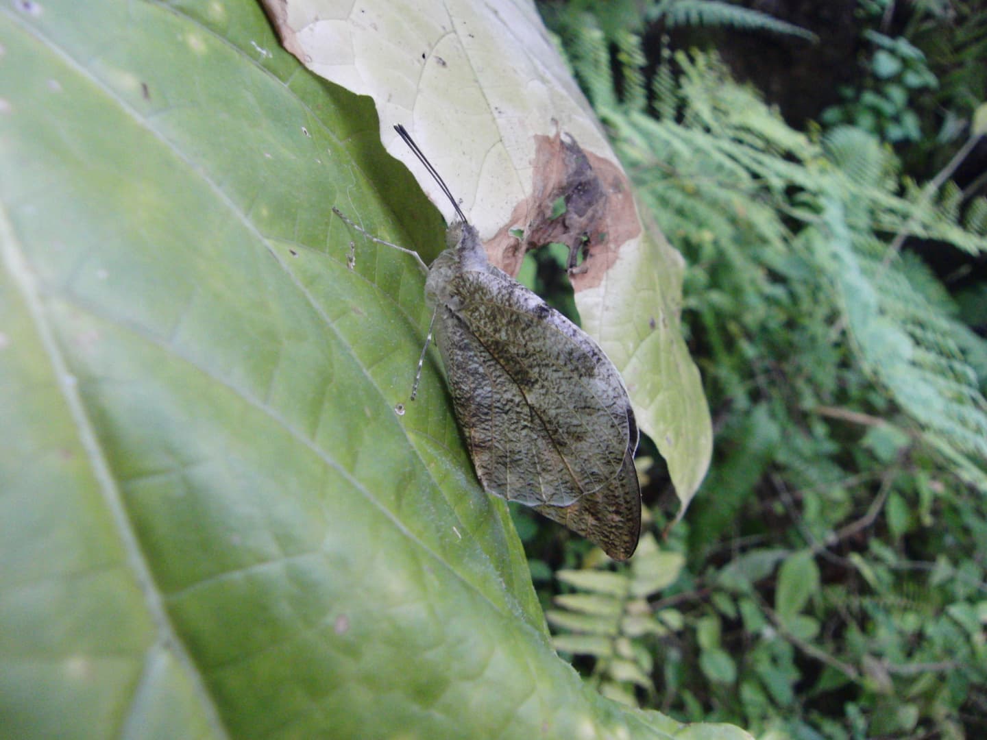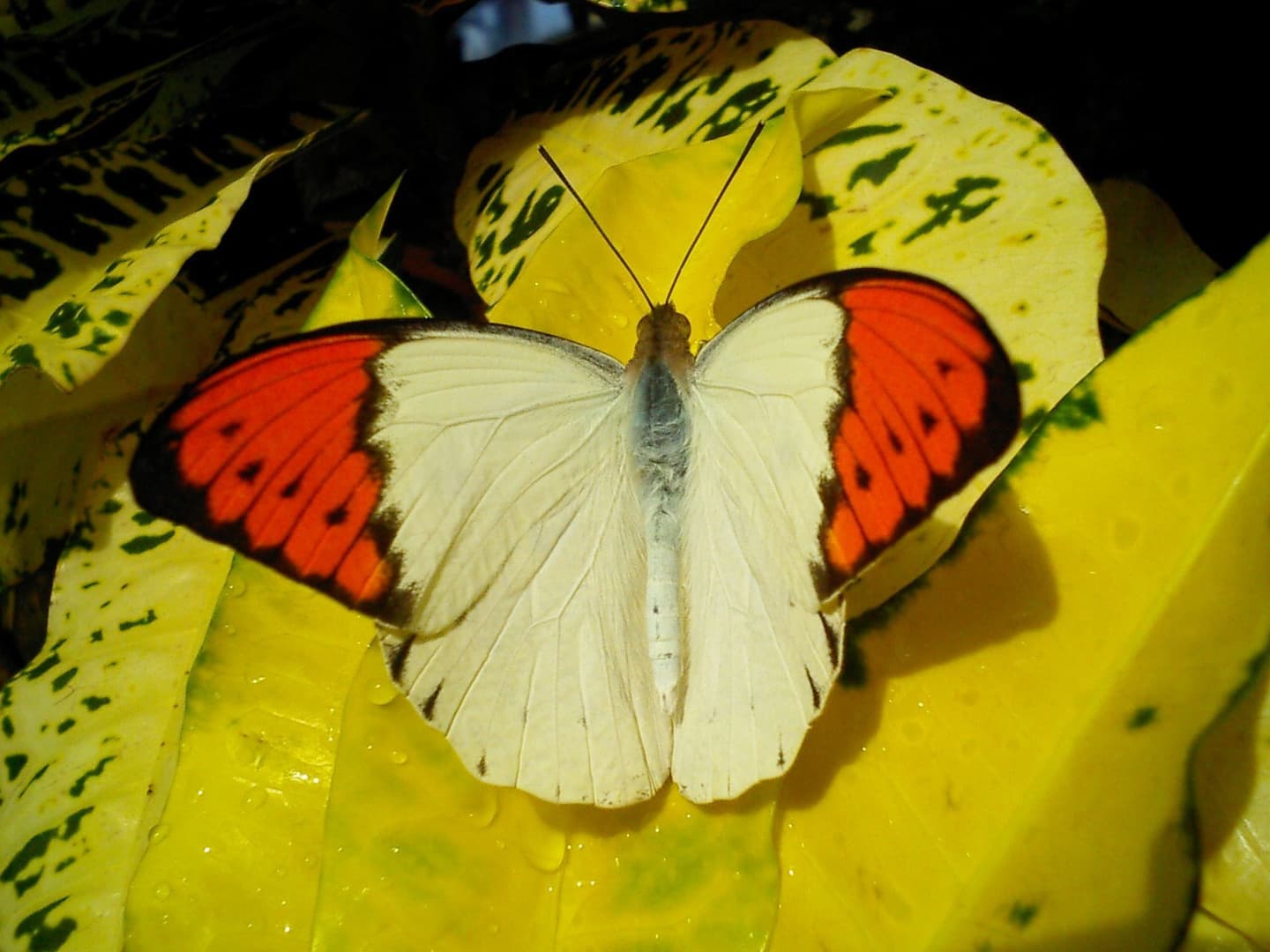 翅を開いている時は表の美しいオレンジ色と白色が目立ちます。しかし閉じた時の裏は表と全く違い、枯葉のような地味な見た目でじっとすることで天敵から隠れています。翅を開いている時といない時の見た目の差を観察してみましょう。