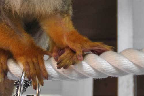 南アメリカ北部のアマゾン盆地を中心とした森林に分布しています。体長は成体でも25~30cm 程度で、体の大きさや体色などがリスに似ていることから、名前が付けられています。雑食性で、野生下では果実や木の実などを主に食べますが、昆虫やカエル、小鳥のひななどの動物質もかなり食べます。