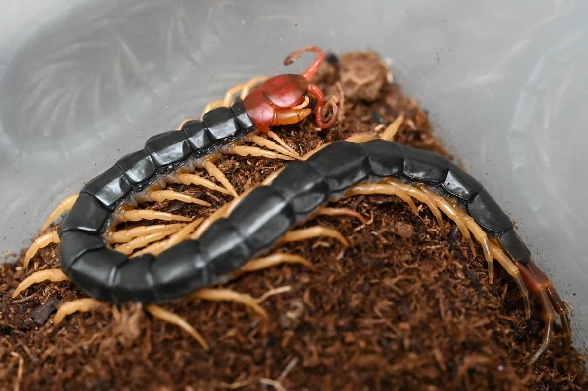 人家周辺でも見かけることがあるムカデです。本州から南西諸島まで、幅広く生息しています。名前の「トビズ」は鳶色(赤暗い茶色)の頭(鳶頭)を意味しています。毒を持っており、噛まれると非常に痛いので注意してください。