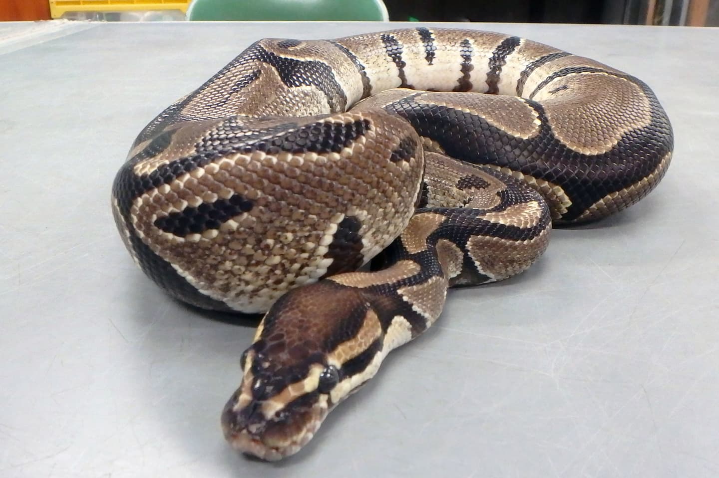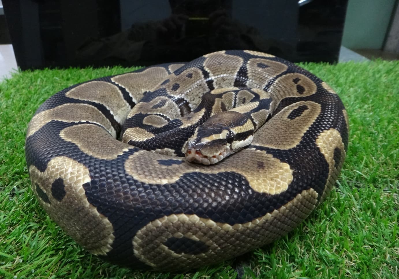 ボールニシキヘビの名前は、外敵から身を守る際にボールのように身を丸めることから名づけられました。外敵がいない時でも体を綺麗に丸めていることが多いです。水に浸かっていることもあるので、ぜひ観察してみてください。