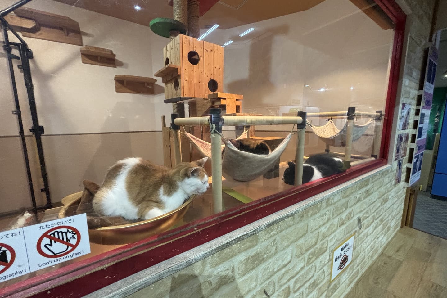 ネコがのんびり暮らす様子が見られます。※お昼に展示を1時間程度休止。