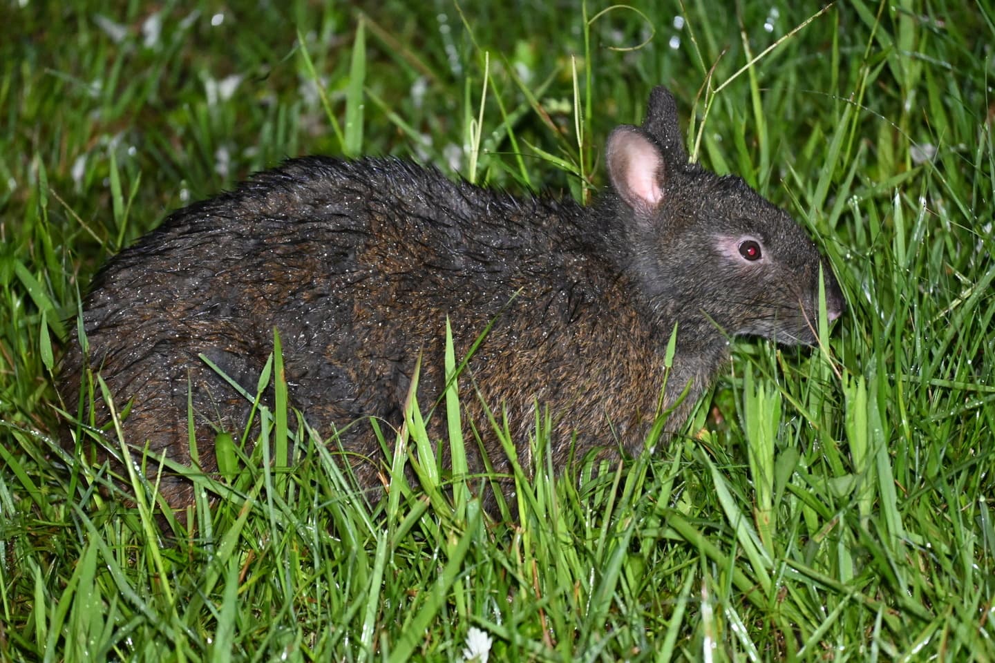 私は琉球列島の自然に魅せられ、毎年のように動物の写真を撮りに行っています。今年は6月に徳之島に行き、ケナガネズミに出会えました。ケナガネズミは、奄美大島、徳之島、沖縄島に棲む日本固有種で、頭胴長25cm~28cmと日本最大のネズミです。原生林の樹上でくらし、夜行性のため、なかなか姿を観ることができません。昨年も奄美大島で見つけましたが、良い写真が撮れずに悔しい思いをしました。