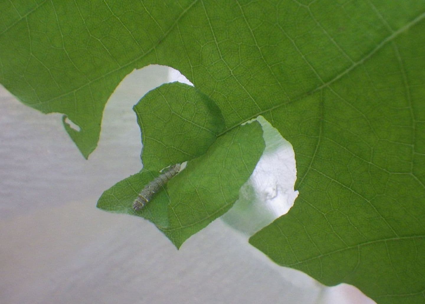 ワザと葉の先端を食べて茶色くなった場所を作り、