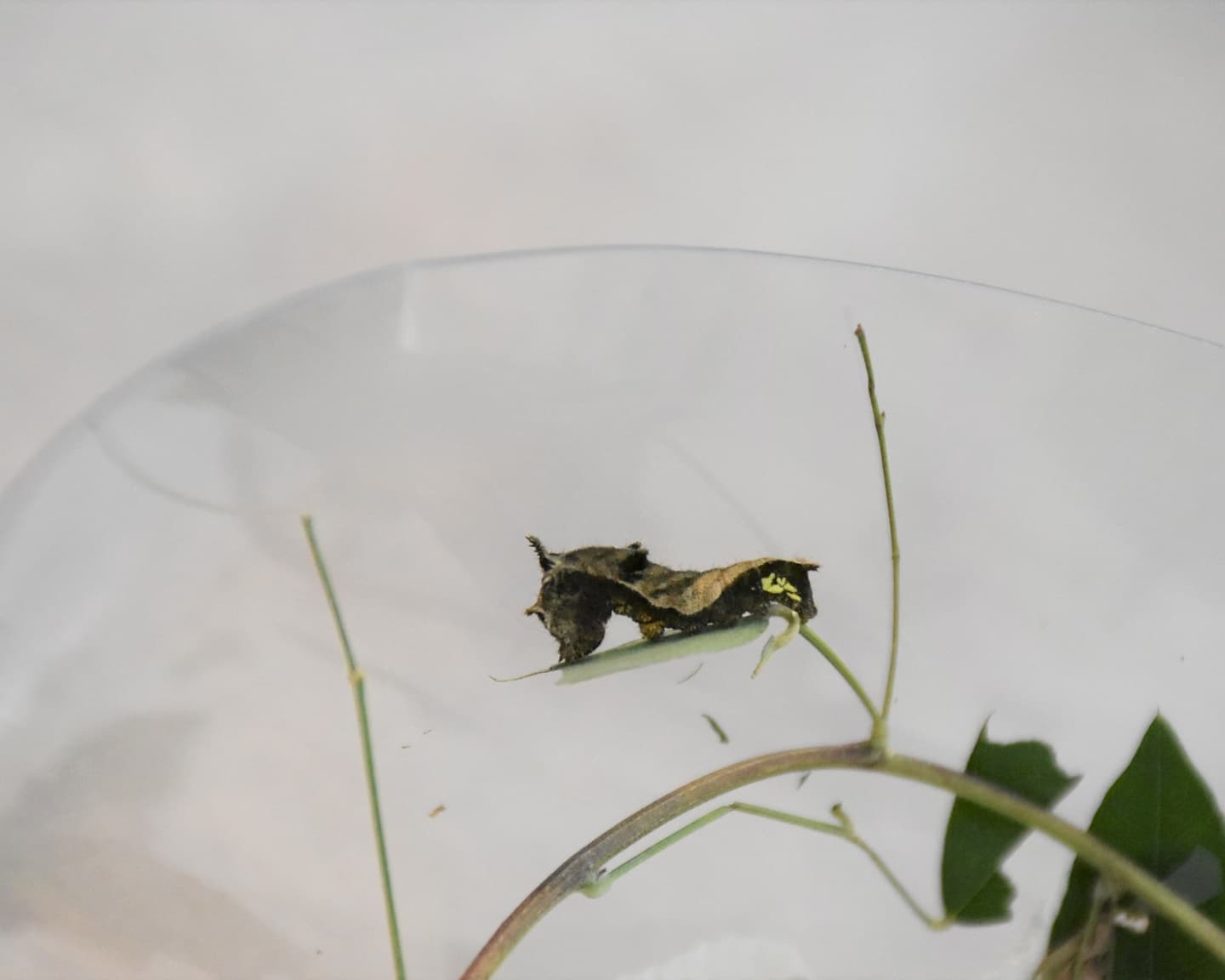 葉の先端を食べて茶色になった様子