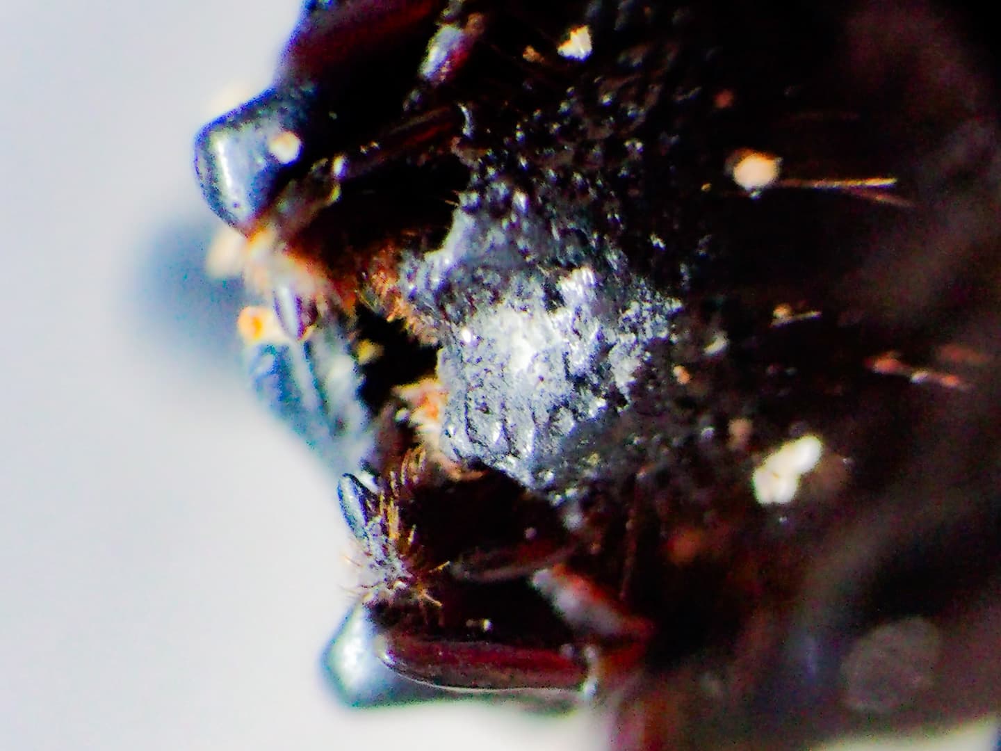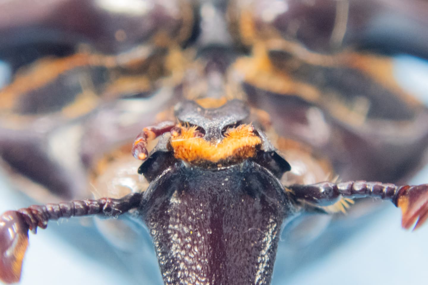 まだ夏の暑さが残る9月末、富山県に昆虫観察に行きました。蚊の猛攻に耐えつつ、山の斜面にあるマツの朽ちた木を目指して突撃しました。目的だったオオゴキブリを見つけることはできたものの、1つの朽木に1匹と、群れで生きる生きものとは思えない結果に。場所を変えようと移動中に良さそうな朽木を見つけ、探してみるとなんとコカブトムシが身を潜めていました。思わぬ発見に喜びながらその日は山を降りました。コカブトムシは全国に分布はしているものの個体密度が低く、なかなか見つからない種類です。名前が似ているカブトムシは一般的に樹液に集まりますが、コカブトムシは肉食性で、ミミズや小動物の死骸等の肉を食べます。そのため、口の形状も異なります。生きものの種類による体の作りの違いを観察するのも楽しいですよ。