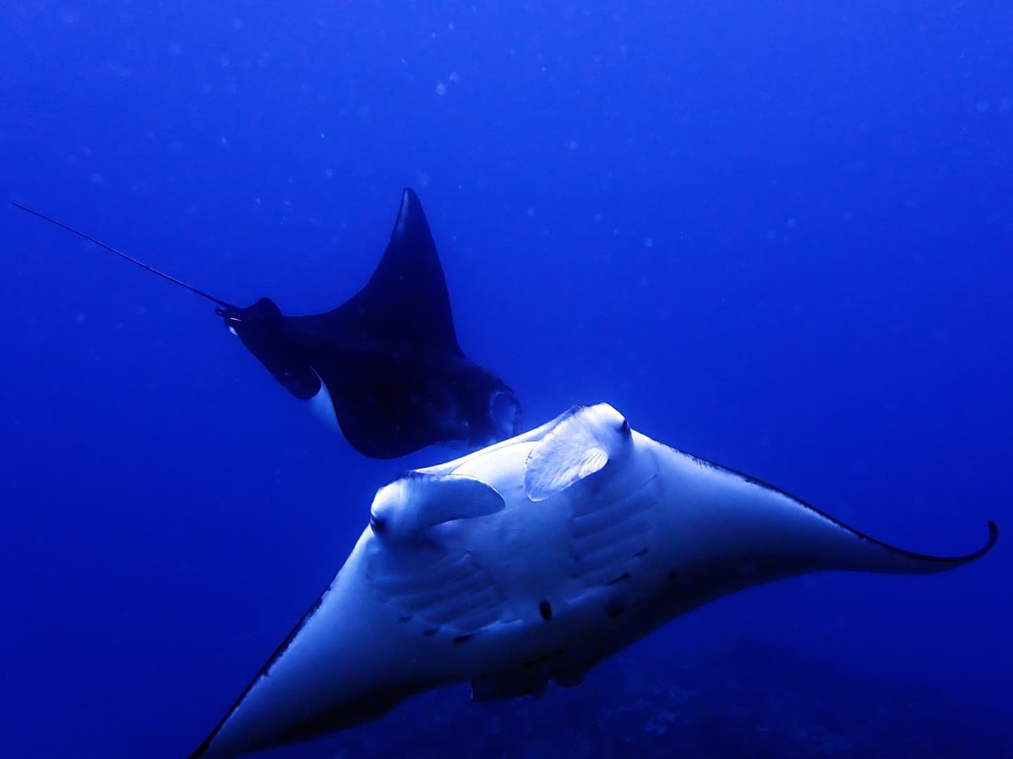 皆さんはマンタという魚をご存じでしょうか。マンタは迫力のある姿からダイバーにとって憧れの存在となっているエイの仲間の魚です。私はマンタと出会うために、沖縄県の西表島に行ってきました。しかし、西表島でも運が良くないとマンタには出会うことができないとのこと。幸運を祈りつつ、期待しながら潜りました。すぐに2頭のマンタに出会うことができ、夢中で観察をしていると、ガイドさんが興奮した様子で岩の向こうを指さしていました。なんだろうと思いながら付いていくと、目の前で5頭のマンタが列をなしてぐるぐると回っていました。これはマンタの繁殖行動なのだそうです。これほどの数のマンタを同時に見られることは非常に珍しいことらしく、ガイドさん共々、大興奮の1日となりました。