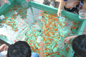 ※金魚のお持ち帰りは、1ポイにつき3匹まで。残念賞は小赤1匹です。