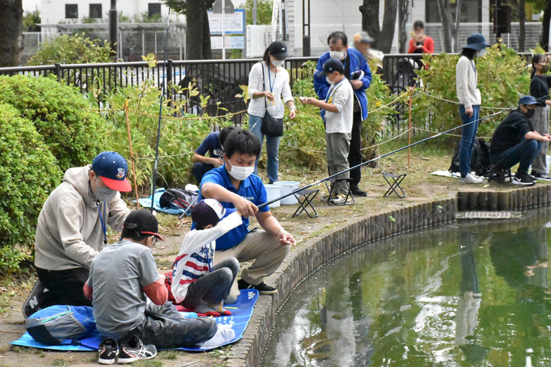生物園がある元渕江公園には野外の生きものがたくさん!公園に出て池で釣りをしてみよう!どんな魚が釣れるかな?