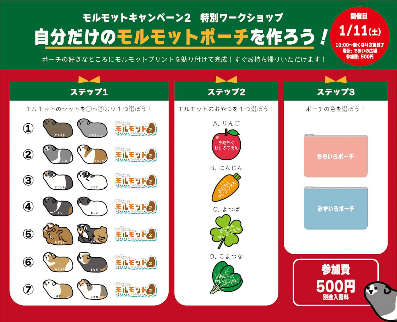 自分だけのモルモットポーチを作ろう!※終了しました