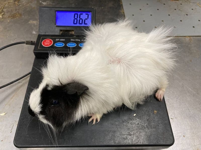 月に一度は体重測定をして、飼っている個体の平均体重を把握しておきましょう。モルモットの平均体重は700~1200ℊ位と、非常にバラつきがあります。飼っている個体の平均体重を把握しておくことは、体調不良の早期発見につながります。