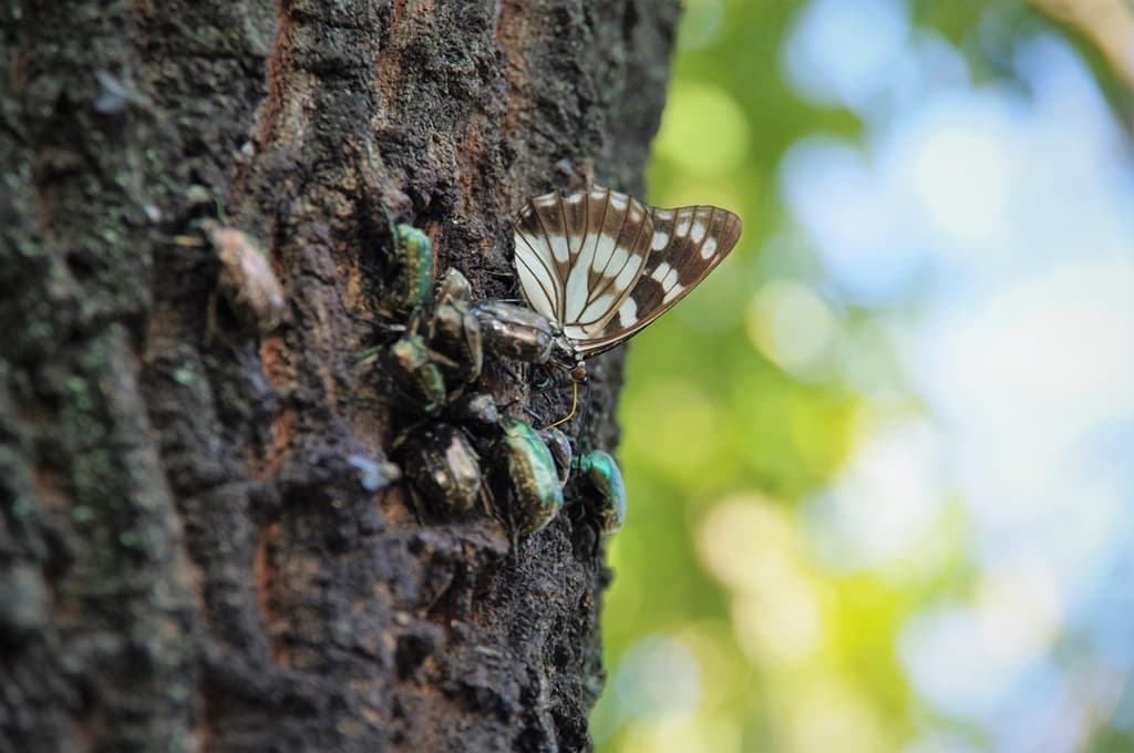 虫のたくさん集まる理由にはいろいろなものが考えられそうです。樹液(じゅえき)や新芽(しんめ)、花など虫のエサになるものがあるか。木が生えている場所の日当たりや風通し。またこの他にも、人間では感じとれないような、虫の好み(このみ)があるのかもしれません。ぜひ、虫のようすを見ながら、その木にたくさん集まる理由を考えてみてください。