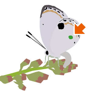 ツシマウラボシシジミの飼育・実験のため、展示個体の翅にマーキングをしている場合がございます。