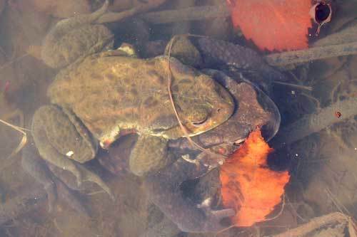 2月も終わりに近づくと、ヒキガエルが冬眠から覚め産卵のために池に集まります。