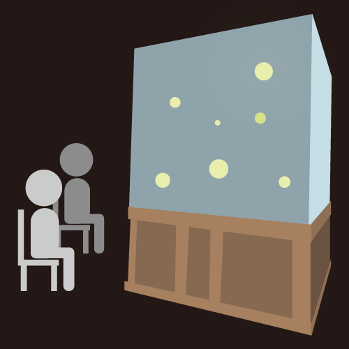 ヘイケボタルの光を中心に、屋内で着席しながら観賞していただくことができます。